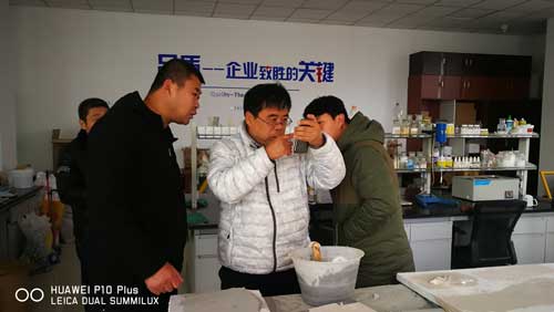 大家在實驗室,交流了砂漿技術,根據客戶的要求,馮總設計了幾款配方,介紹了如何鑒定砂漿質量的方法,預拌砂漿的施工性非常重要,如果施工性調不出來,根本進不了工地,因此,砂漿配方技術的調整,主要是保證調出砂漿的施工性,讓工人認可,產品才能打開市場。
